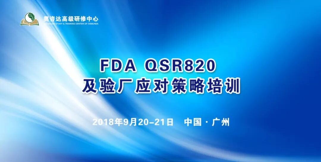 课程背景 美国 FDA (美国食品药品监督管理局) 是国际医疗审核权威机构。其认证是世界食品和药品的高检测标准,包括医疗器械。国际上,许多厂商都以追求获得 FDA 认证作为产品品质的高荣誉和保证。 为帮助我国医疗器械企业更深刻地理解 FDA 的审查和批准程序,进一步推动医疗器械注册技术要求与国际接轨,并从技术层面上提高中国医疗器械质量规范管理的水平,保障公众使用医疗器械安全有效,特开此次培训班。 课程大纲 一、什么是FDA工厂大检查? -检查目的是什么? -检查对象是哪些(谁要遵守QSR820?) -检查依据是什么? -检查员手册是什么? 二、FDA工厂检查方式 三、FDA工厂检查的重点 四、FDA工厂检查的结果 五、FDA工厂检查的准备工作 六、FDA工厂检查的经验教训 七、QSIT的关键内容: -管理控制 -设计控制系统 -21CFR820.30设计控制步骤 -CAPA系统 -CAPA体系意见 - CAPA过程审核 -输入CAPA过程 -评估 -调查 -措施计划 -执行 -检查效果 -生产和过程控制 -贴标 八、基本培训、器械历史文件、器械控制记录、器械历史记录 九、QSR820检查医疗器械企业常见问题(包括审核现场) 培训对象 管代及各部门负责人,检验人员,注册人员 时间及地点 开课时间: 2018年09月20-21日 开课地点: 广州市大学城小谷围街青蓝街26号(奥咨达总部9楼) 费用及付款 ❶ 报名费用 3000 元/人 早鸟价:2400元/人,截止时间8月20日 (包含增值税、培训费、资料费、证书费、茶歇等) ❷ 付款账号 户名:广州市奥咨达医疗科技有限公司 支付宝:xm.zhang@osmundacn.com 其他说明 开班人数 因场地限制,仅限40人 以报名及缴费先后顺序为准,报满即止 开课说明 本次课程满20人开班,提前一周邮件发《开课通知》;如果未能达到开班人数,顺延至下个开班时间,已报名付费的学员可选择下个开班时间的课程,也可选择同价位的其他课程(不限时间和地点),也可选择不同价位的课程(多退少补),或全额退款。 报名通道 长按二维码报名 仅限40名 邮件回复详细信息 联系人 全女士 电话:020-62316262-620/13512789186(同微信) 邮箱:hongxin.quan@osmundacn.com