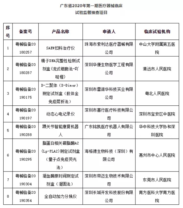 广东省药品监督管理局关于开展2020年第三期医疗器械临床试验监督抽查的通告