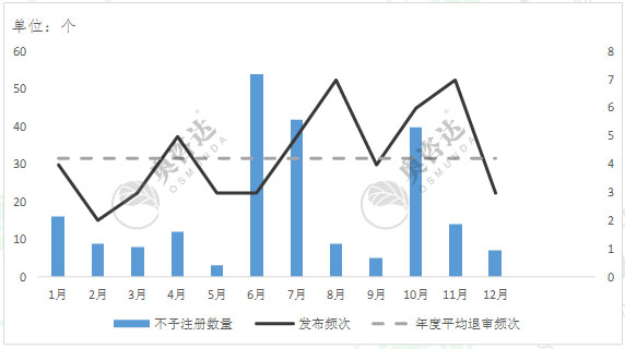 表3-13 2017年不予注册数量及发布频次
